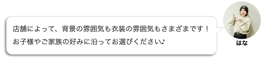 撮影プランや店舗ごとの雰囲気など