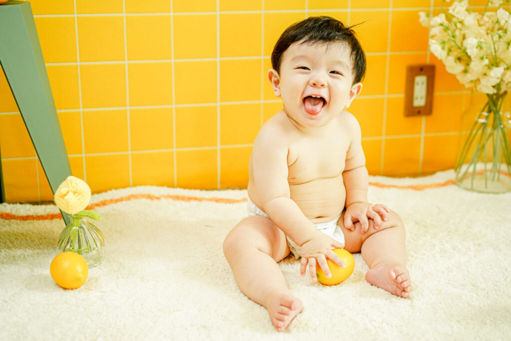 支えなしで1人座りができる1歳未満のお子さま